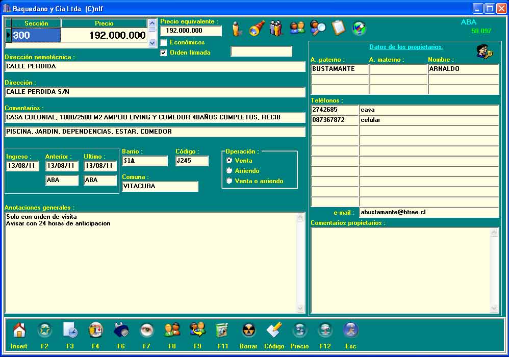 En el Sistema de Propiedades de btree.cl una propiedad puede ser ingresada en distintas monedas, puede ser ingresada para venta, arriendo o ambas operaciones, es posible consultar por los clientes que la han visitado y cuales son los posibles interesados en visitarla. Es posible asociar fotos a la propiedad.